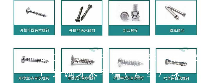 (鐵板牙自攻螺絲) B-2: Plastic Tapping Screw. (塑膠用,自攻螺絲) C: Wooden Screw : 木工螺絲 D: Drywall Screw :水泥墻螺絲 E: Self Drilling Screws鉆尾螺絲(不銹鋼鉆尾螺絲,復合材料鉆尾螺絲) F:膨脹螺絲,四片膨脹螺絲又
